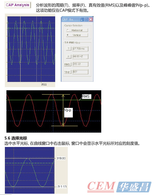 RMS:測量并記錄交流周期信號(hào)的電壓和泄漏電流的真有效值