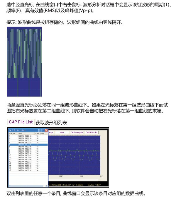 波形記錄:記錄超出設(shè)定電壓(電流)值的波形(764個(gè)數(shù)據(jù))